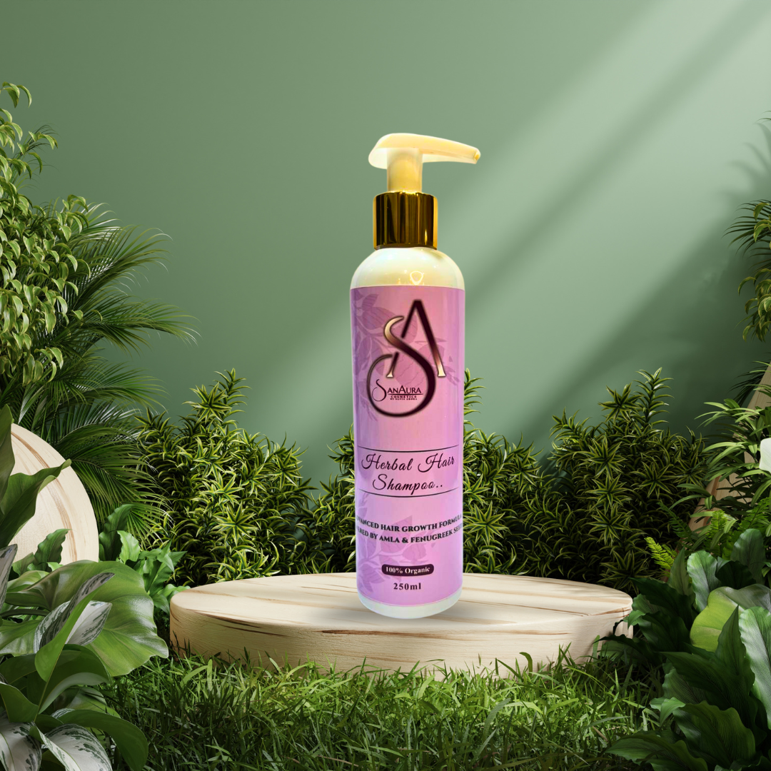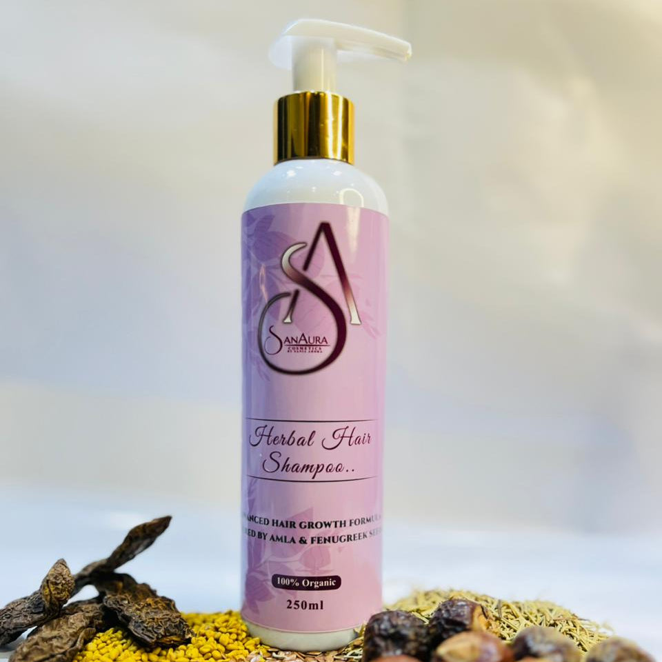 Refresh, strengthen, and revive your hair with SanAura Cosmetics Herbal Hair Shampoo – 250ml, a gentle yet powerful herbal formula designed to cleanse your scalp while promoting healthy hair growth.